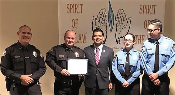 Hemet Police DepartmentThe Spirit of the Law Award was presented to the Hemet Police Department and received by Lt. Eric Dickson, left, and Capt. Glen Brock. Others are, U.S. Congressman Raul Ruiz and Hemet Police Department Explorers Cordova (lieutenant), and Persona (captain). This award recognized the daily hard work by the men and women of the Hemet Police Department, from the officer responding to calls for service to the records specialists processing mountains of paperwork. [/caption] ■ By Dennis Fletcher / Contributed
