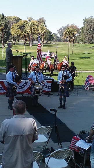 The UCR Bagpipe Band and Riverside Sheriff’s Mounted Posse entertained guests at Golden Era Productions on Veterans Day.[/caption]
