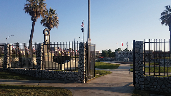 Photo by Dennis FletcherAfter vandals stole semi-precious metals from the Veterans Memorial, the city erected a fence around the monument.[/caption] Burgers and onions There were also food booths, including one sponsored by the Hemet Lions Club that offered hot dogs and hamburgers with grilled onions and cheese, and another serving tacos to the many families who showed up during the day. A number of Hemet restaurants served free meals on Sunday to the area’s veterans. The Veterans Day event at Gibbel was dubbed the Sixth Annual Flags of Freedom tribute to the region’s veterans and was hosted by the Exchange Club in partnership with the cities of Hemet and San Jacinto. Dean Wetter, president of the Exchange Club, said: “This event is one way we want to show our appreciation and gratitude for the men and women who have given so much for our country so we can continue to live in freedom and enjoy the greatest democracy of the world.”