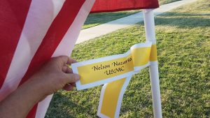 All the flags in Gibbel Park had yellow ribbons attached with the names of service personnel on them, believed to be an expression of the sponsor’s desire to bring our troops home safe.[/caption]